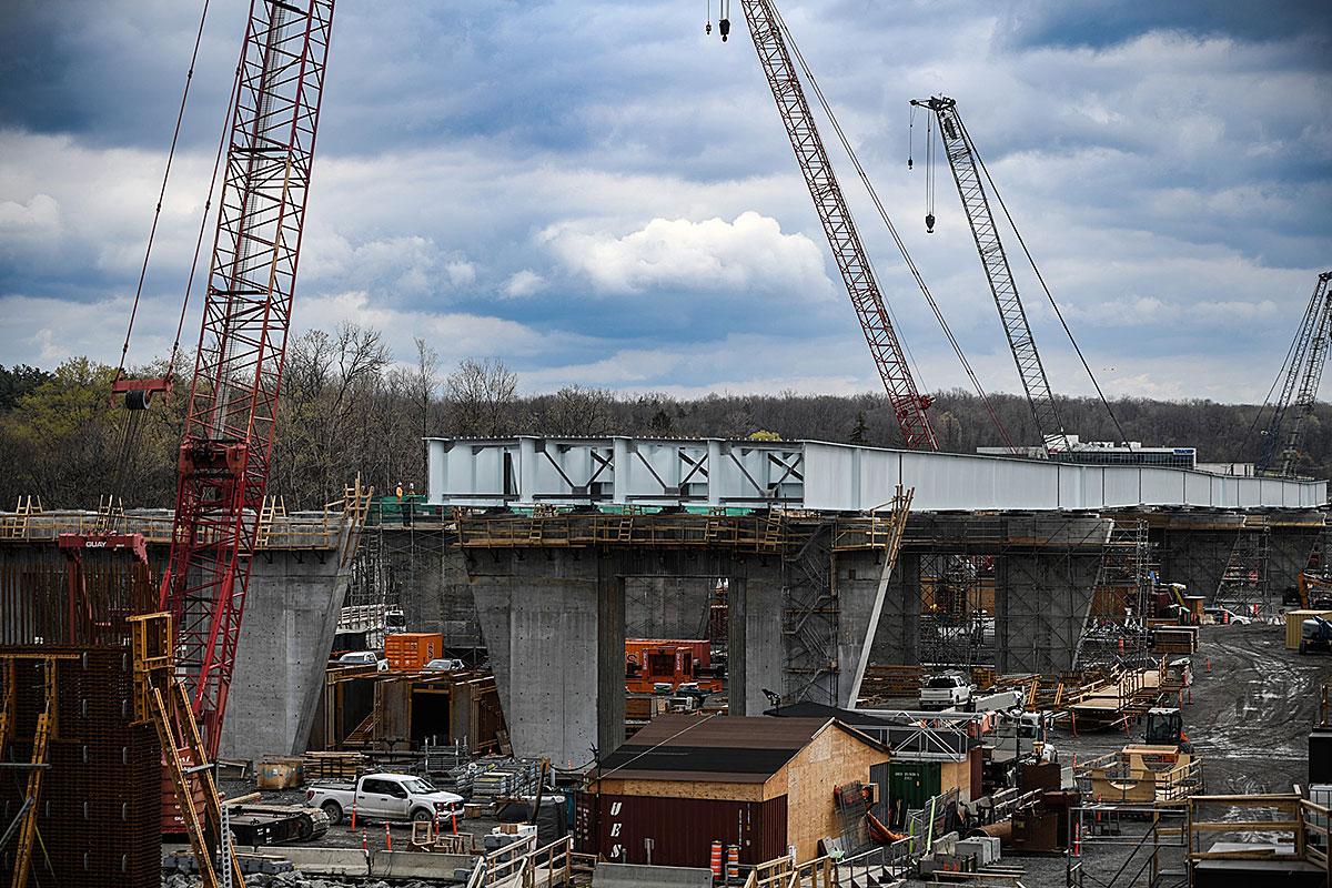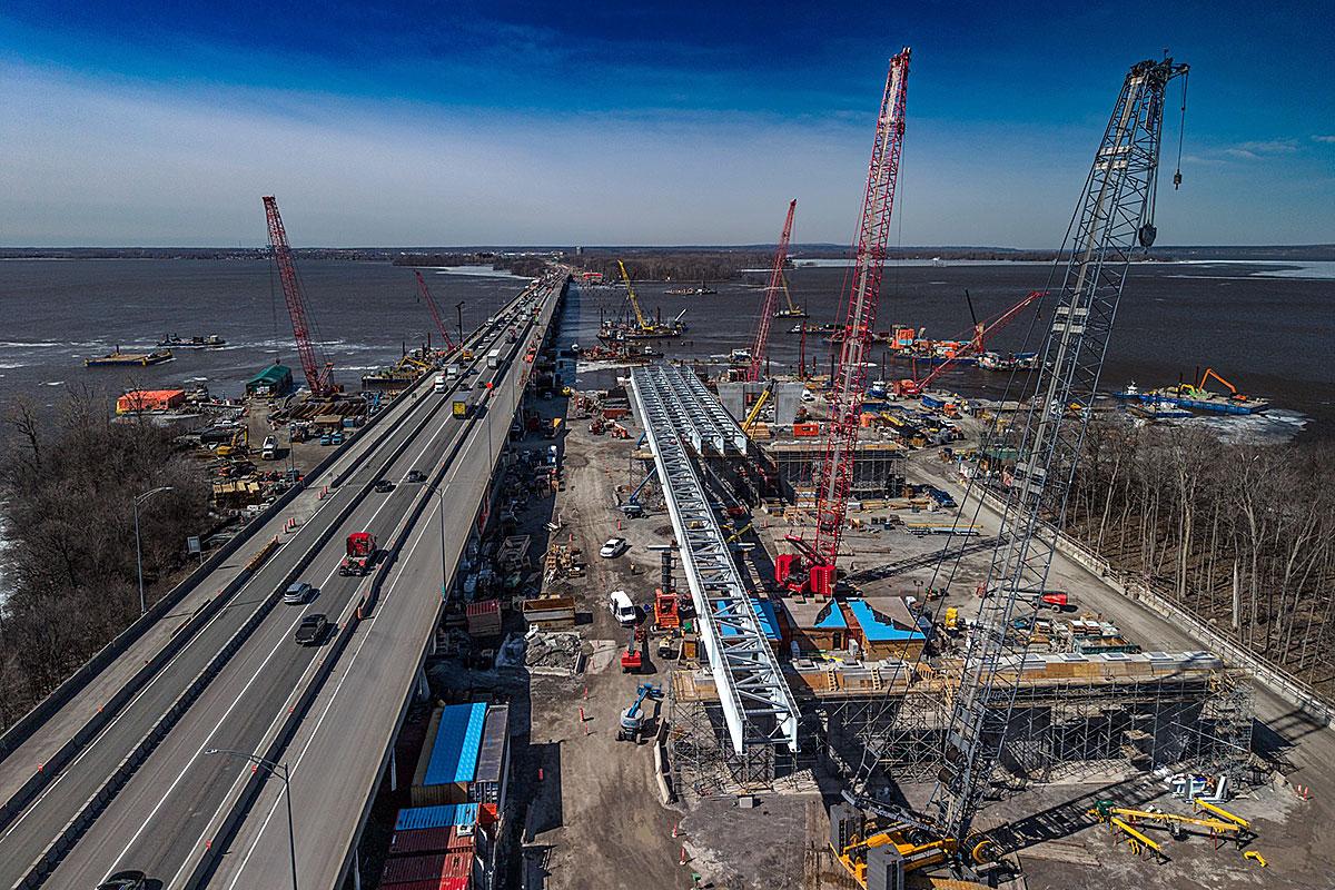 Le chantier de construction a officiellement été lancé à l’automne 2023. La première grande étape de mise en service est prévue pour la fin de l’année 2026, avec l’ouverture d’une première structure offrant cinq voies, dont la gestion sera adaptée à l’achalandage en période de pointe. À la fin de 2027, la deuxième structure sera mise en service, permettant la circulation sur six voies, soit trois sur chacune des structures.